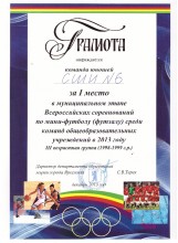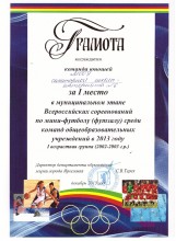 5 декабря в рамках игр муниципального этапа Всероссийских соревнований по футболу среди команд общеобразовательных учреждений города Ярославля в 2013 году среди юношей 1998-1999г.р. наша команда одержала головокружительную победу и заняла 1 место!!!