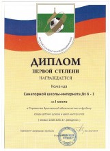 7-11 декабря 2016 года на Международном турнире по мини-футболу среди команд детских центров для детей-сирот и школ-интернатов в городе Санкт-Петербурге честь нашей школы защищала футбольная команда в составе: